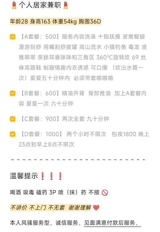 小狼去过三次,进门老师很热情 给你换鞋 带你去洗澡,过程中挑逗你,完事上床开始服务,先背部按摩 指划 嘴拔罐,两只大咪咪游走,正面一样 舔小狼的咪咪 酥麻酥麻的 重点是口活,舒服要死 360℃口爽飞,69无异味 。带雨伞开始 省略好多字 老师服务号 不催时间 绝对真实。